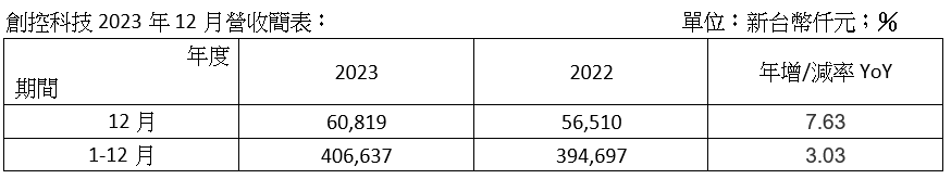 創(chuàng)控科技去年營收突破4億元大關(guān) 創(chuàng)歷年新高紀錄