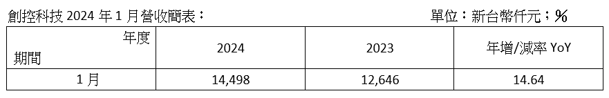 創(chuàng)控科技1月營收1,450萬元 設(shè)備出貨穩(wěn)定